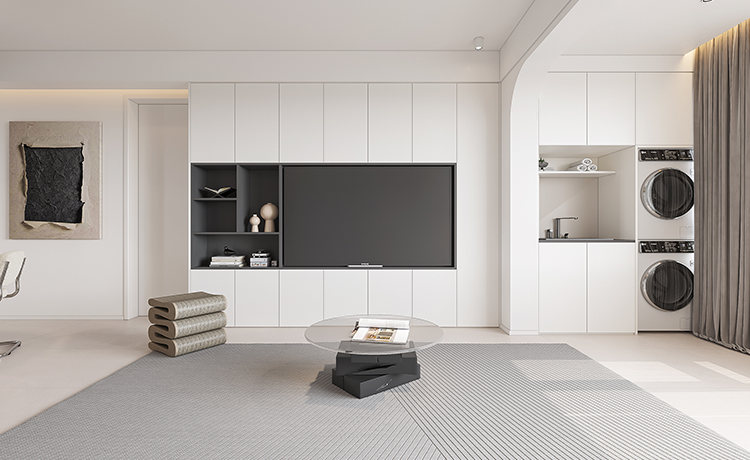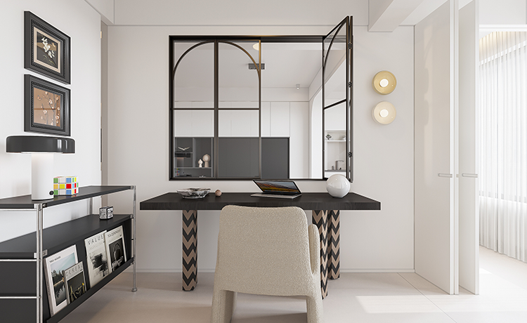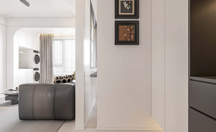 三室兩廳戶型,客廳是內(nèi)陽臺,改落地窗優(yōu)化室內(nèi)采光,并保留基礎(chǔ)的晾曬功能。次臥室將內(nèi)凹的不規(guī)則空間改成開放式衣帽間,化戶型缺點為優(yōu)勢。衛(wèi)生間改成三分離布局,不同功能區(qū)互不打擾,使用更方便。