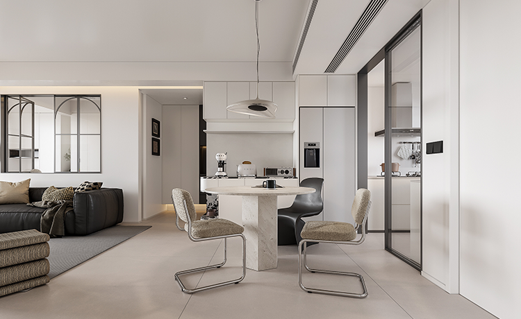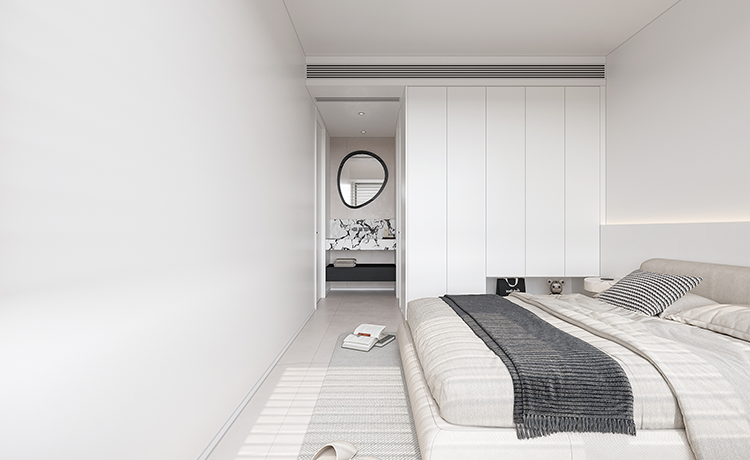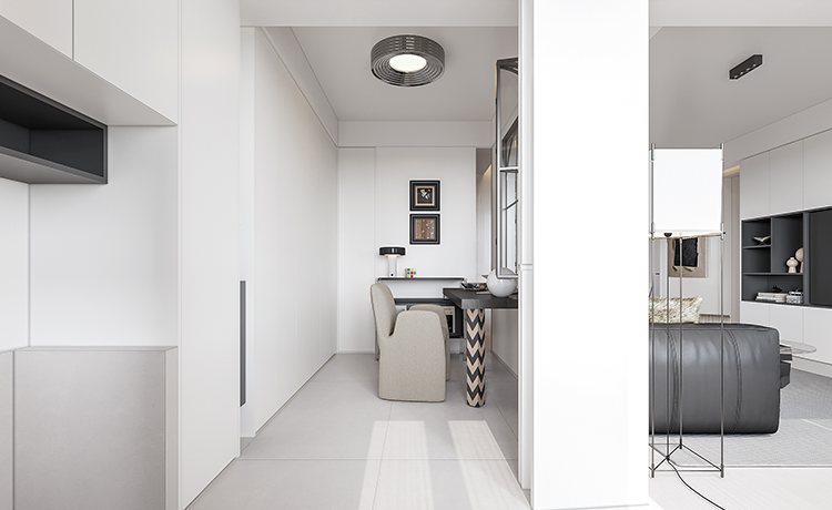 陽臺并入客廳,并與相連的書房打通,形成雙動線布局。保留雙衛(wèi)布局,并做干濕分離,迎合居住者的個性化生活需求。主臥室擴(kuò)容,提高睡眠環(huán)境的舒適度。