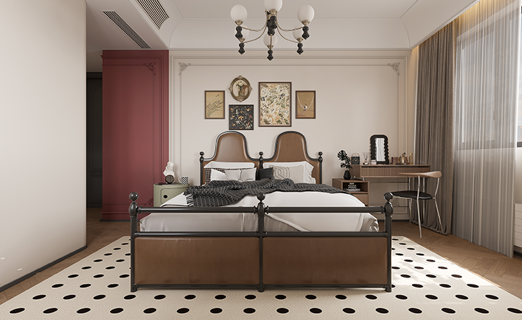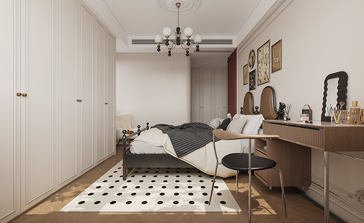 從主臥讓渡部分空間給南次臥,布局與動(dòng)線更加規(guī)整、流暢。拆墻改雙面柜設(shè)計(jì),同時(shí)兼顧隔斷與收納雙重功能。北次臥向外擴(kuò)充,增加可利用面積。主臥室與旁邊的小次臥打通,形成多功能套房布局。