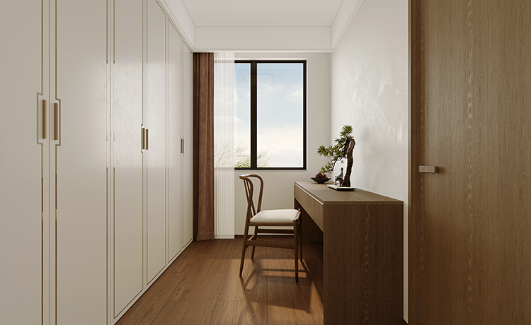 拆掉部分多余的墻體,重新優(yōu)化布局和動(dòng)線。客衛(wèi)改成干區(qū)外移的布局,避免墻體遮擋視線,增強(qiáng)空間的開闊感。兩間朝南的臥室均讓渡出部分空間給到過道,優(yōu)化生活動(dòng)線。書房改成了開放式,采光更優(yōu)渥。